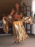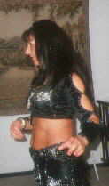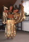 | | | Ulla in goldenem - und schwarzem Kostüm |